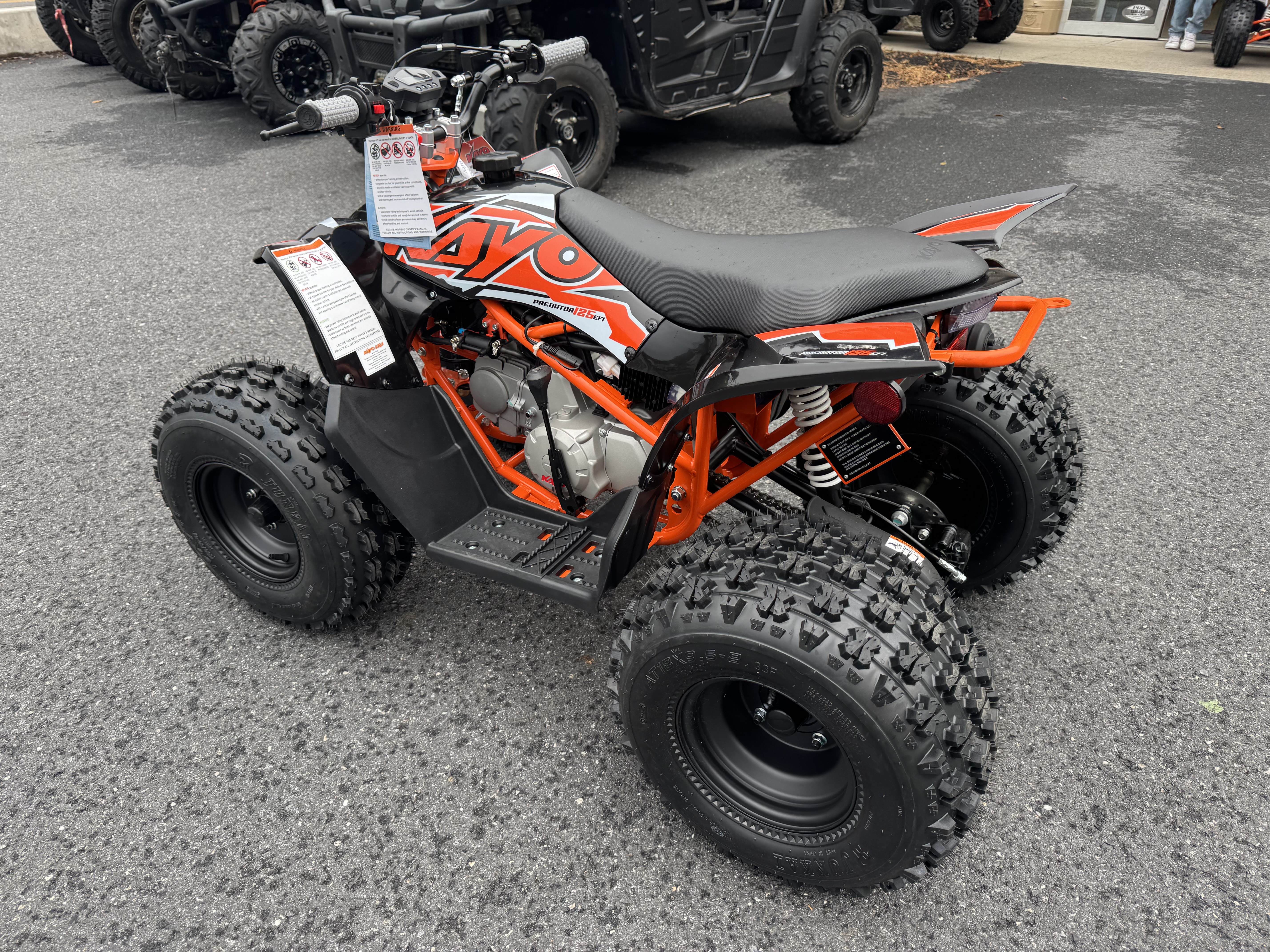 The Predator 125 EFI is back and better than ever! Featuring upgraded clutch components, a fuel-injected engine for smoother power delivery, an LCD display, and more aggressive tires, this sport ATV is built for adventure. New rubber-mounted plastics in the footpeg area enhance durability, while its proven 4-stroke engine, reverse gear, and electric start make it a top choice for young riders (10+). With a lightweight, in-house designed frame and premium suspension, the Predator 125 EFI is ready to dominate the trails. Covered by a 6-month limited warranty.