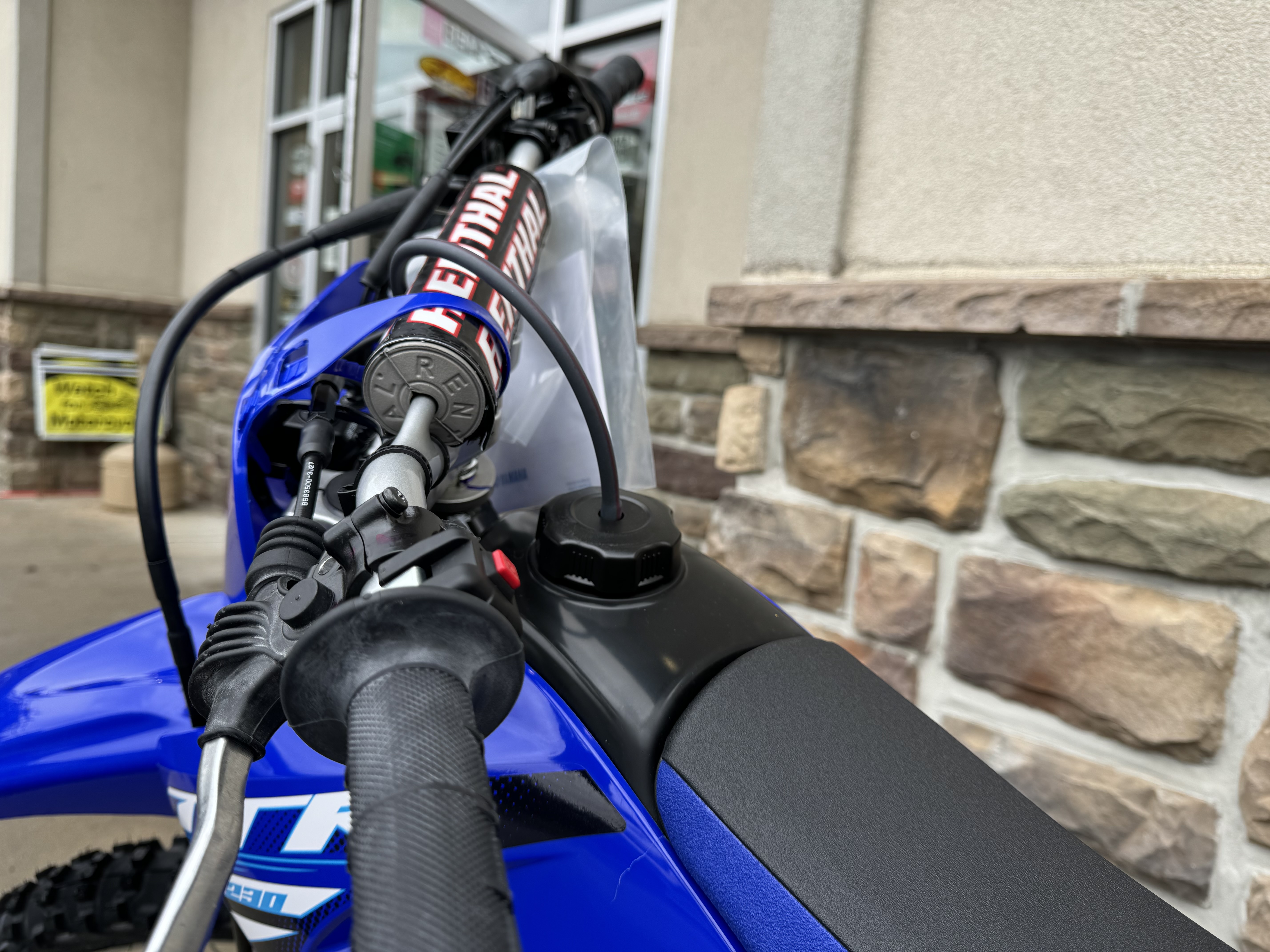 Team Yamaha-inspired colors and graphics and front and side number plates create distinctive, motocross styling.